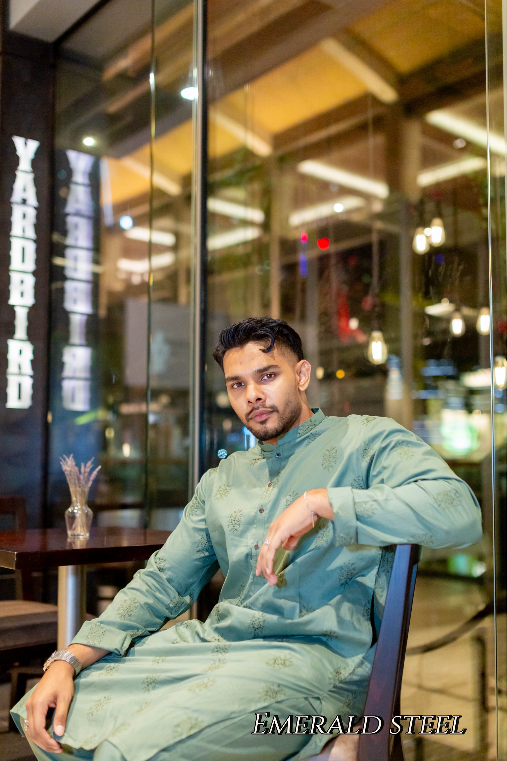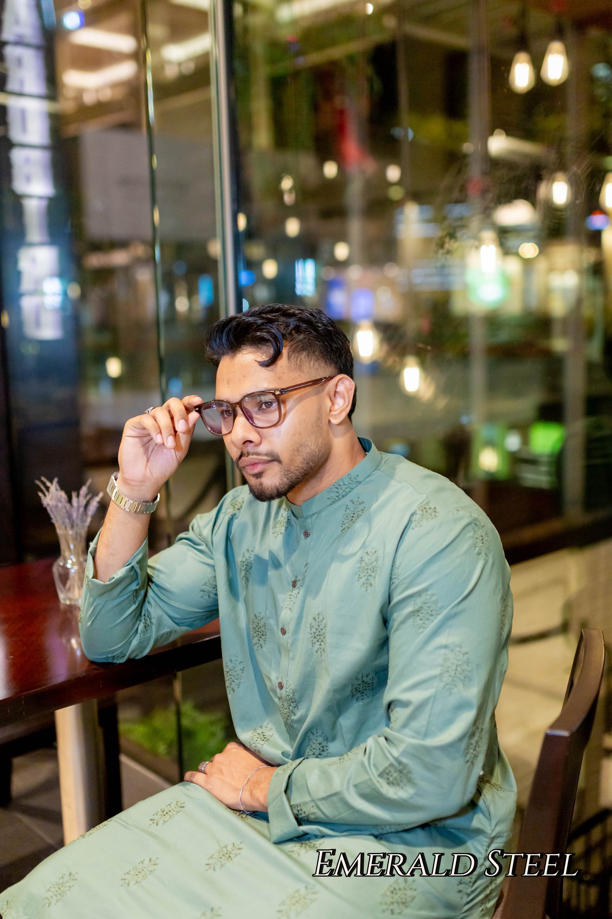Upgrade your wardrobe with our EMERALD STEEL men kurta set. Crafted with high-quality steel fabric in a striking emerald green color, it features intricate embroidery for a touch of elegance. Perfect for any formal event, this set includes pants for a complete and stylish look.
