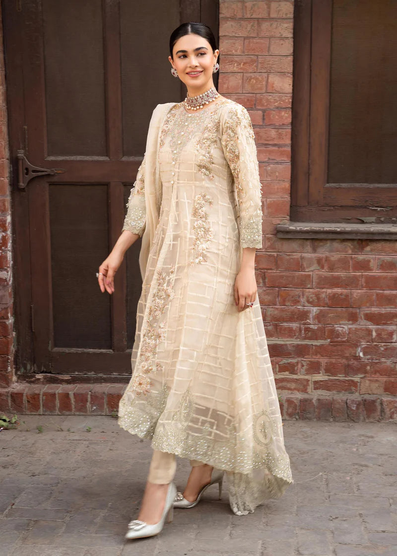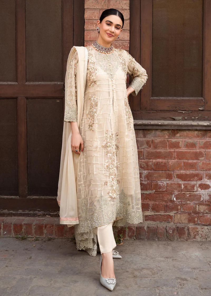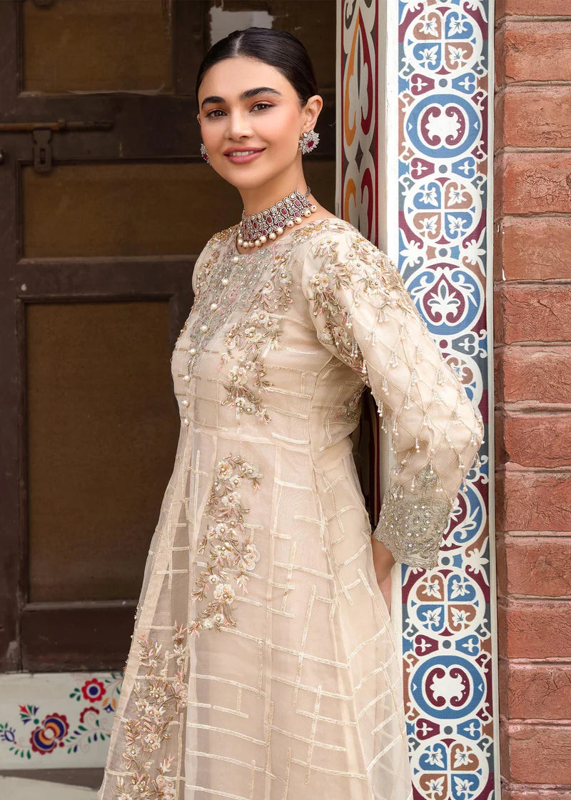 Elegant 3 piece set set, featuring intricate embroidery and a unique front-split design. It includes a soft chiffon dupatta, offering a graceful touch. Fully lined for modesty, this outfit is perfect for hijabs, combining style and comfort